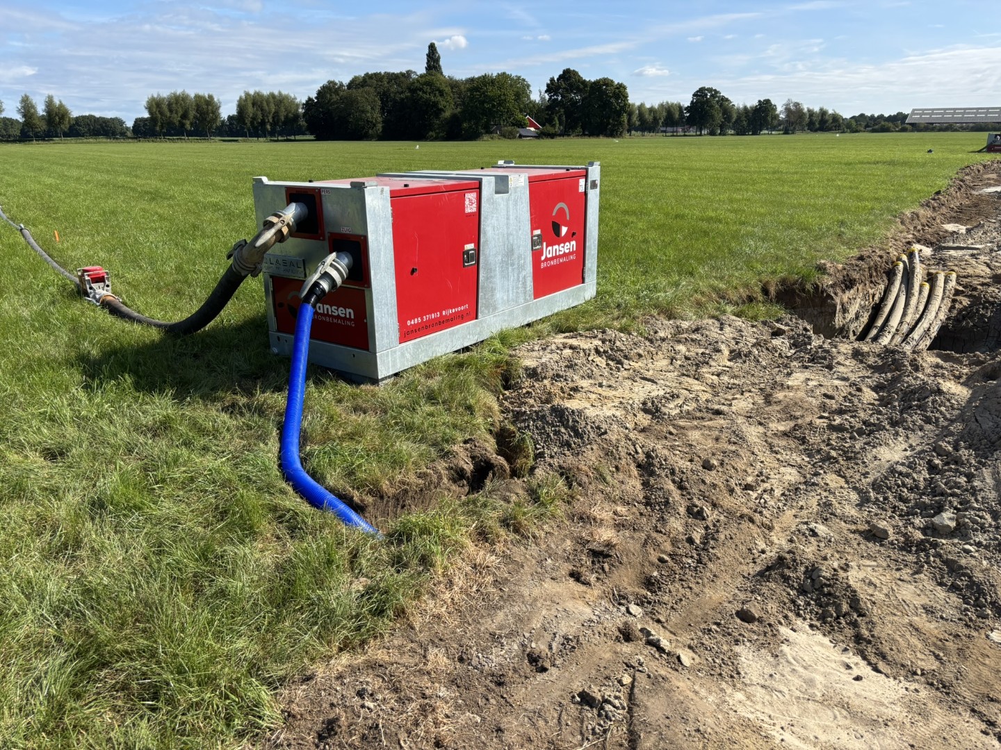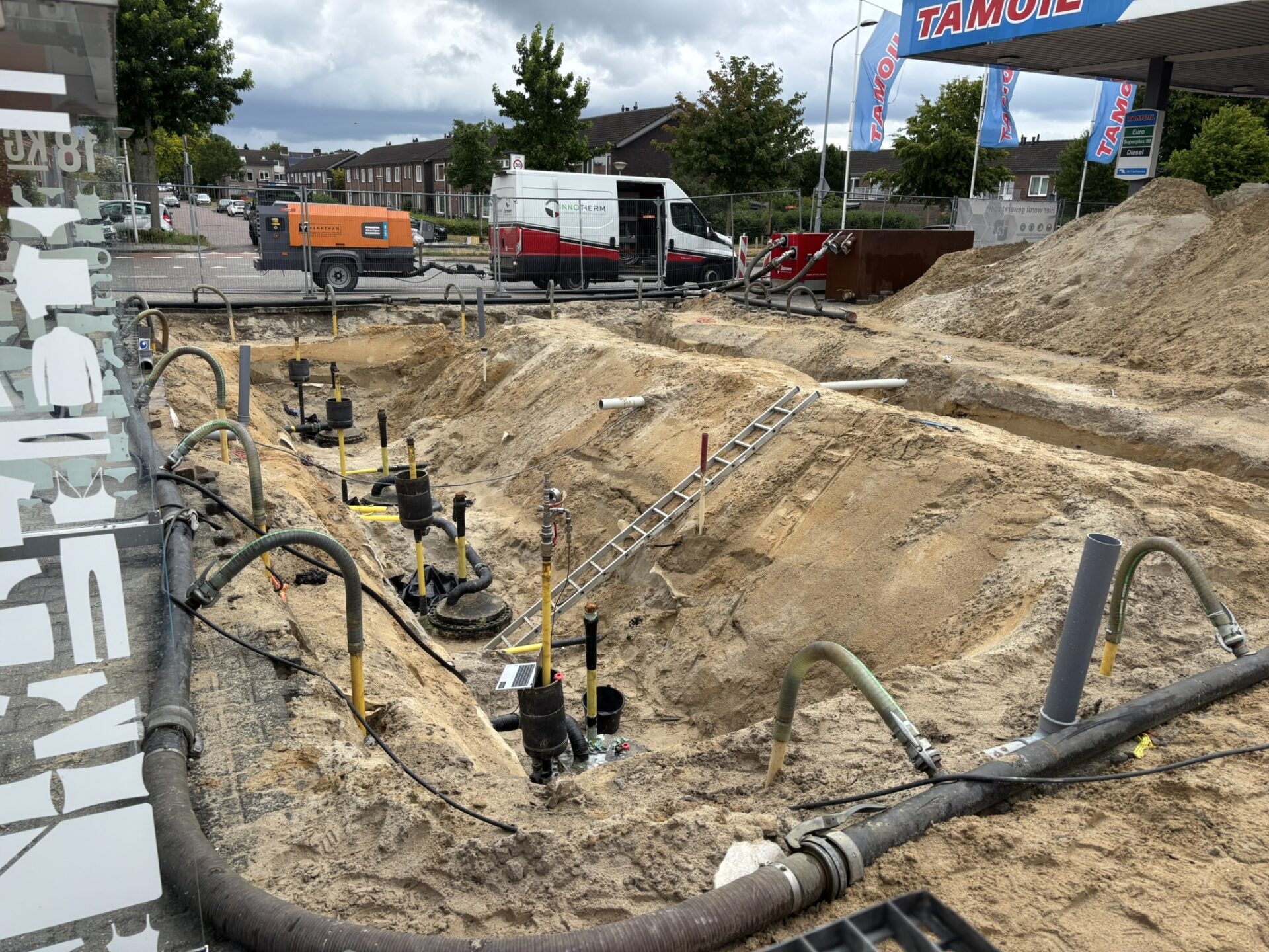 Tijdens de aanleg van een nieuwe riolering ondersteunen wij met bronbemaling, zodat het werk veilig en droog kon worden uitgevoerd.