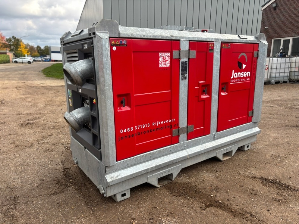 Veelzijdige droogzelfaanzuigende vuilwaterpomp. In de pomp zit een centrifugaalpomp die wordt aangedreven door een 25kW dieselmotor. Hierdoor heeft de pomp een capaciteit van max. 385 m³/h en een opvoerhoogte van maximaal 32 meter. De vuilwaterpomp is uitgerust met een vacuümsysteem en een vacuümpomp. Met deze droogopgestelde pomp kunt u rekenen op een krachtige zuigwerking van 8 à 9 meter of tussen de 70 tot 100 meter zuiglengte. Het vooraf opvullen met water is bij deze pomp niet nodig, hierdoor is hij snel inzetbaar.