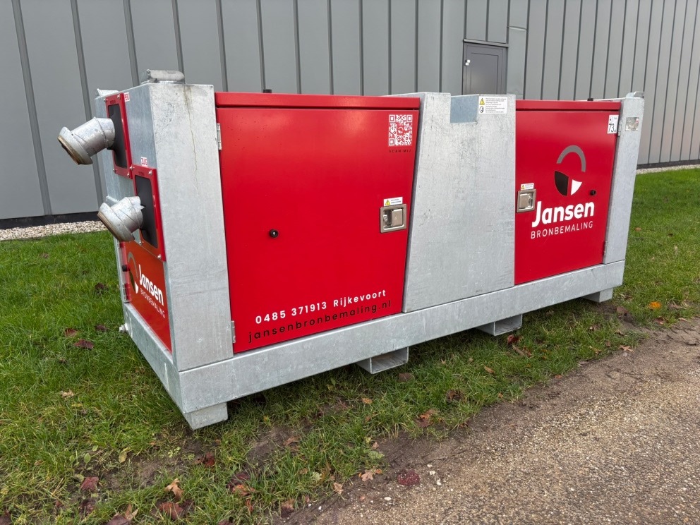 Veelzijdige droogzelfaanzuigende vuilwaterpomp. In de pomp zit een centrifugaalpomp die wordt aangedreven door een 25kW dieselmotor. Hierdoor heeft de pomp een capaciteit van max. 385 m³/h en een opvoerhoogte van maximaal 32 meter. De vuilwaterpomp is uitgerust met een vacuümsysteem en een vacuümpomp. Met deze droogopgestelde pomp kunt u rekenen op een krachtige zuigwerking van 8 à 9 meter of tussen de 70 tot 100 meter zuiglengte. Het vooraf opvullen met water is bij deze pomp niet nodig, hierdoor is hij snel inzetbaar.